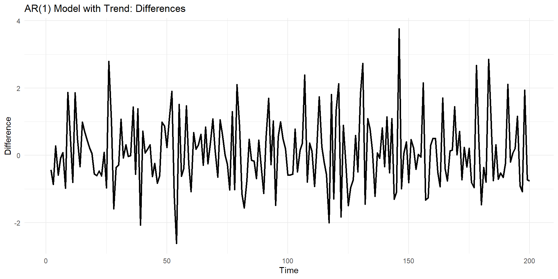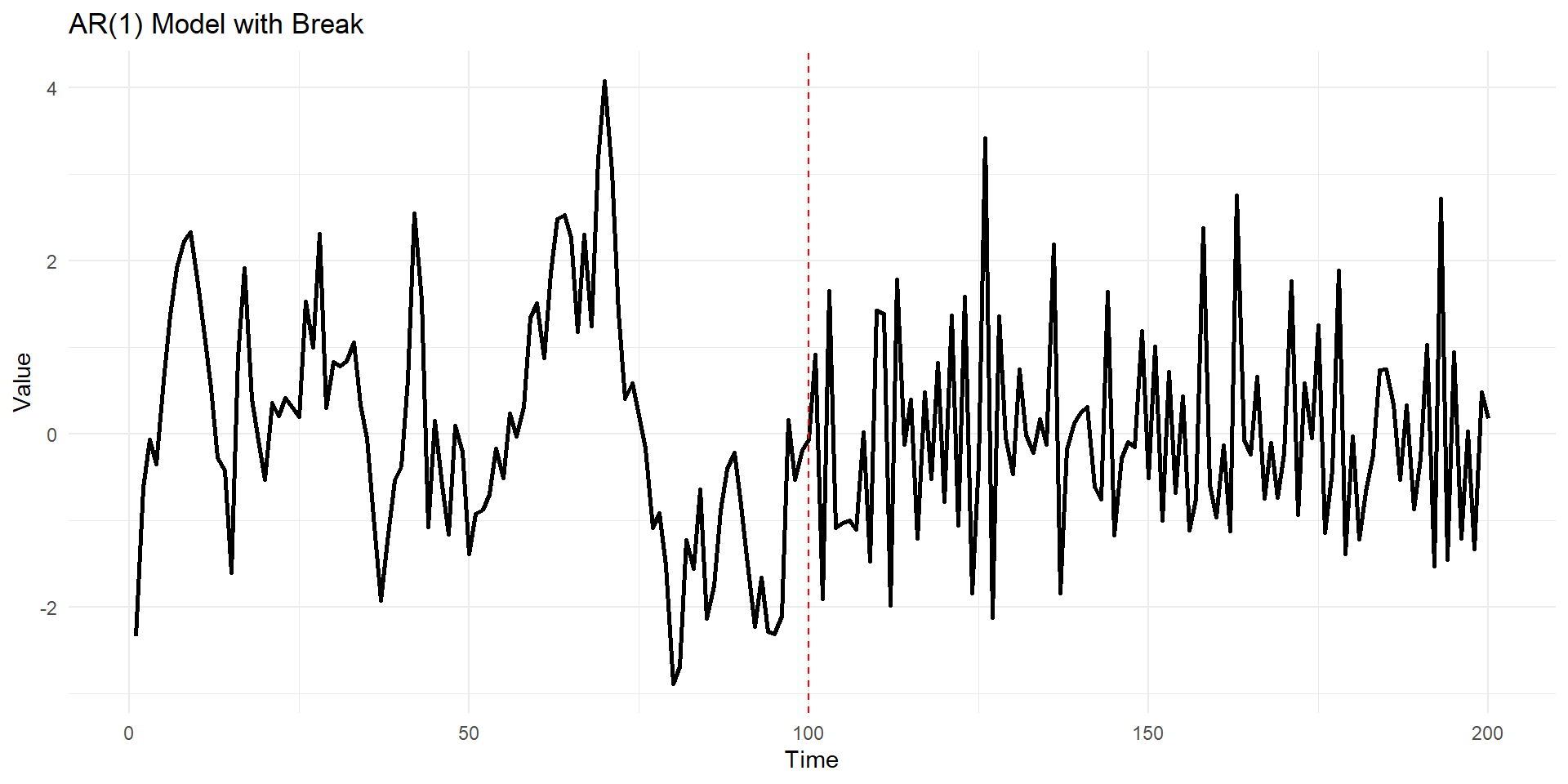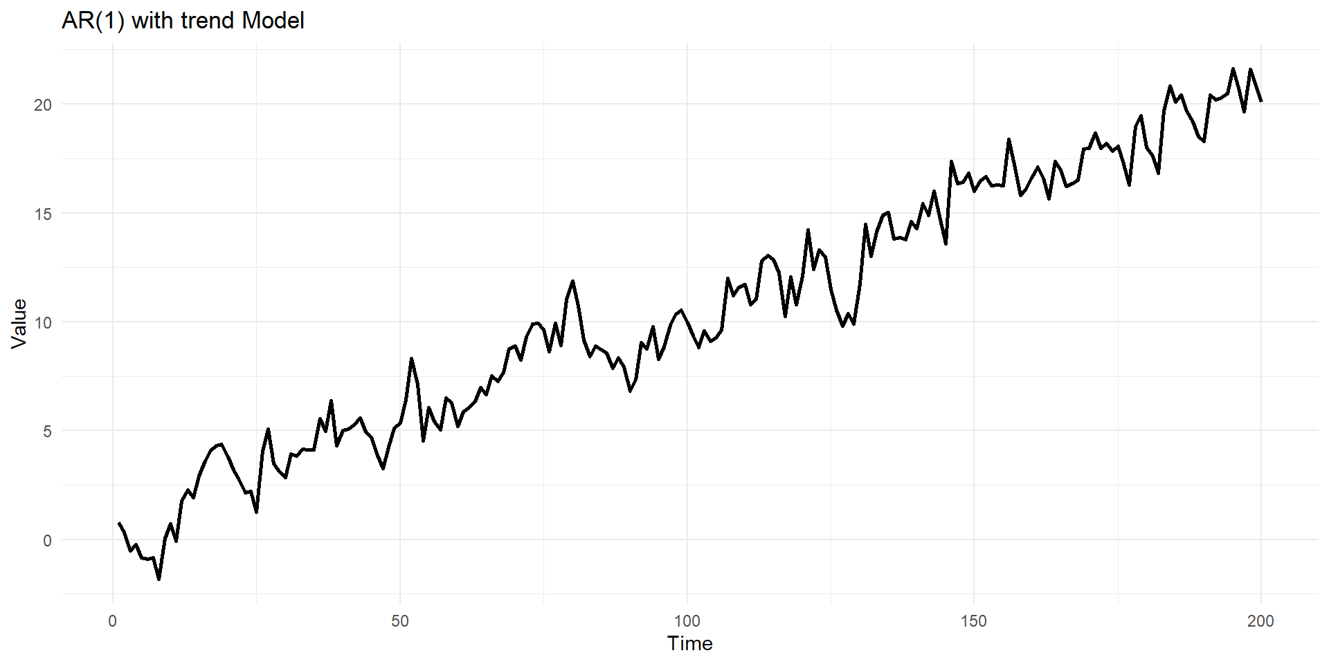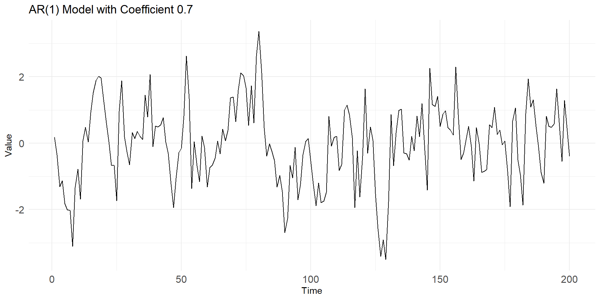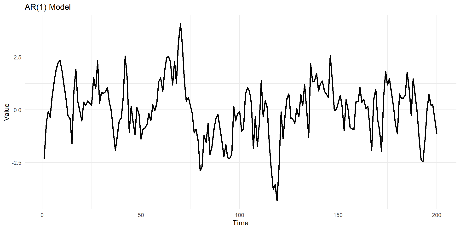 geom_line(linewidth=1) +labs(title = "AR(1) Model ", x = "Time", y = "Value") +