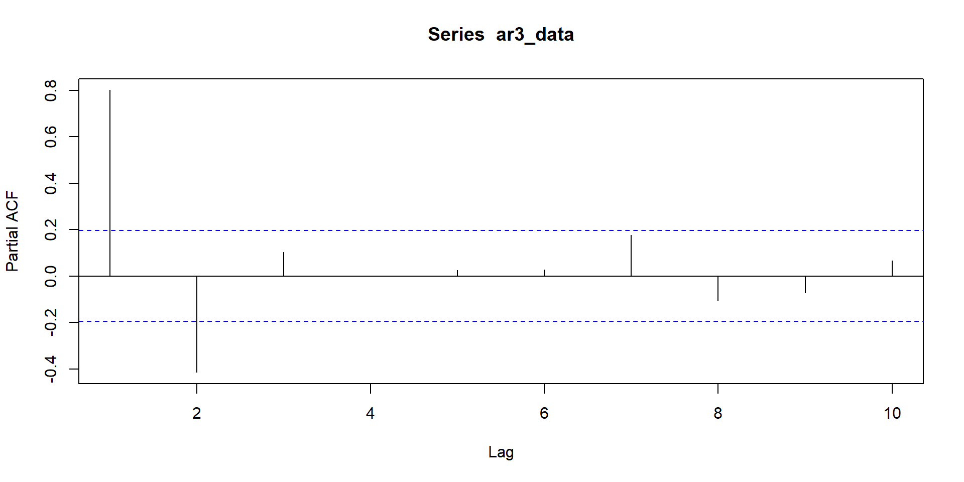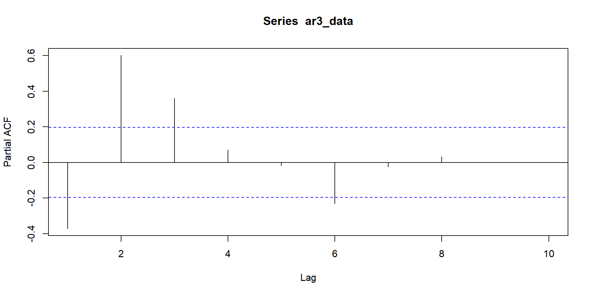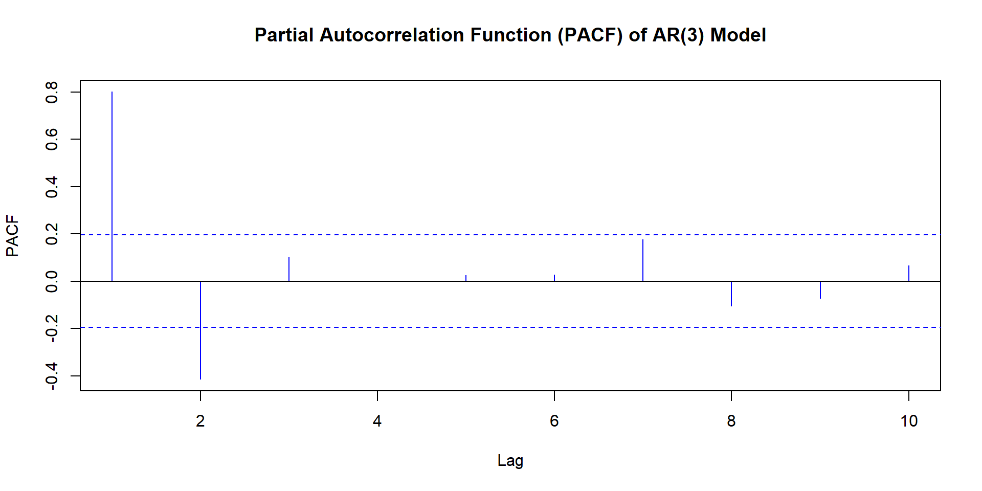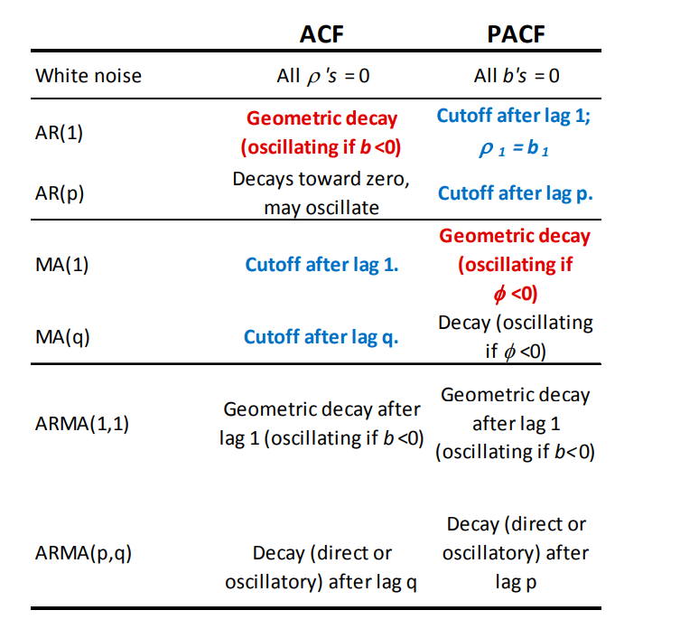 PACF decays gradually for ARMA, MA, drops to 0 for AR