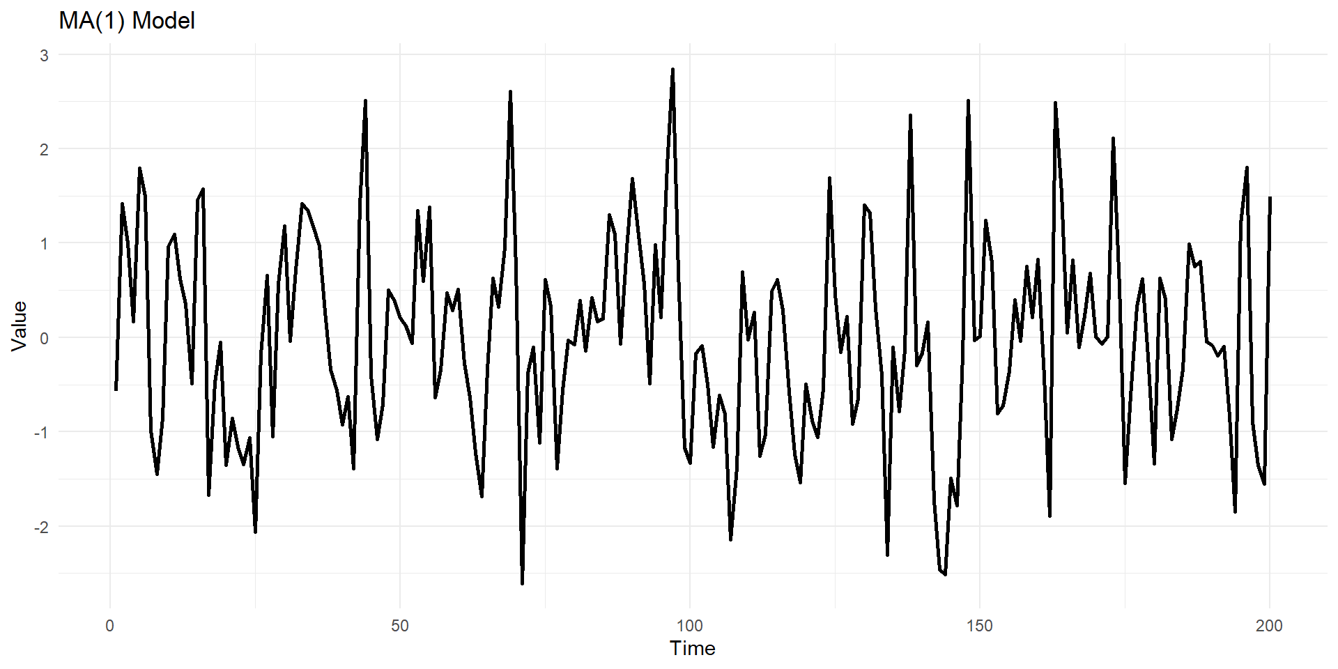 geom_line(linewidth=1) +labs(title = "MA(1) Model ", x = "Time", y = "Value") +