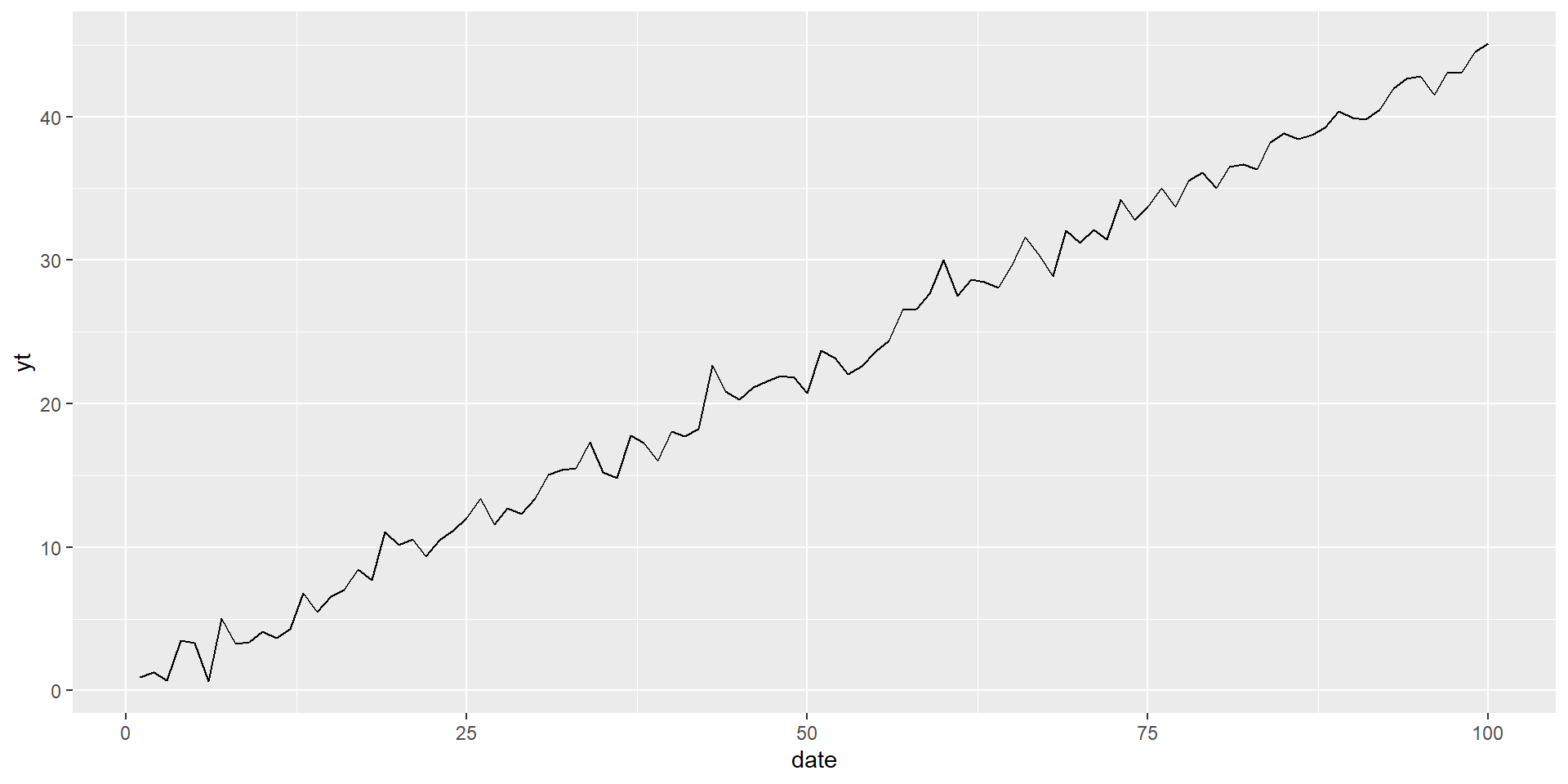 \(y_t=\mu+\beta t+u_t\) , where \(u_t\) is “iid”